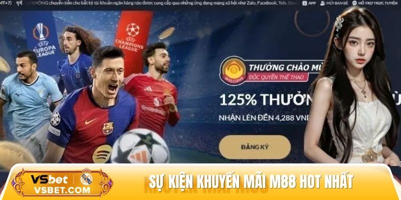 Khuyến mãi M88 đang tạo nên sức hút cực lớn trong cộng đồng cá cược trực tuyến khi mang đến hàng loạt phần thưởng hấp dẫn, tỷ lệ hoàn trả cao và ưu đãi nạp lại lên đến 50%. Không chỉ giúp người chơi gia tăng vốn cược, các chương trình này còn khẳng định đẳng cấp phục vụ chuyên nghiệp của nhà cái. Bài viết sau, cùng Vsbet tìm hiểu chi tiết từng ưu đãi và cách nhận thưởng nhanh chóng nhất nhé.